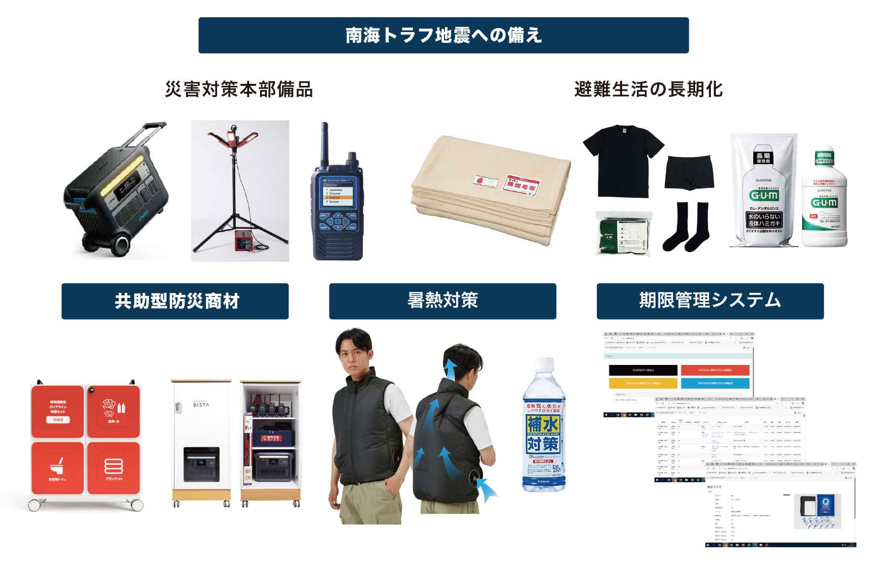 そごう・西武 商事事業部のブースでは、 南海トラフ地震や長期避難生活への備え、共助型防災商材を ご紹介いたします。